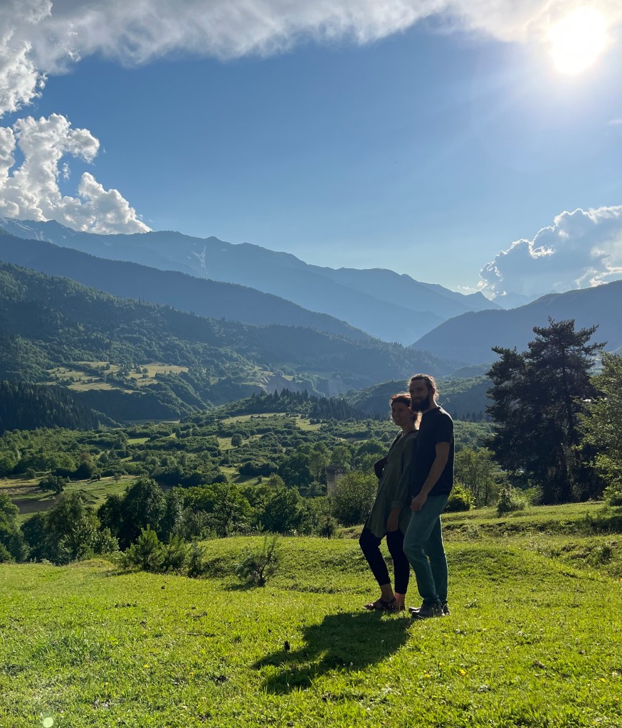 This music is composed by Henry Brink. Henry sings in Orthodox church choirs in America and sang in a Russian Orthodox cathedral choir in Kazakhstan for a year, and he and his wife and friends have traveled twice to Georgia to learn its chant and folk songs. He is from the Great Plains and was raised on Bluegrass and American folk.